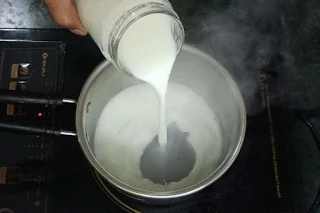 एक बर्तन में 500ml दूध डालकर मध्यम आंच पर रखें और दूध को अच्छे से उबाल लें!